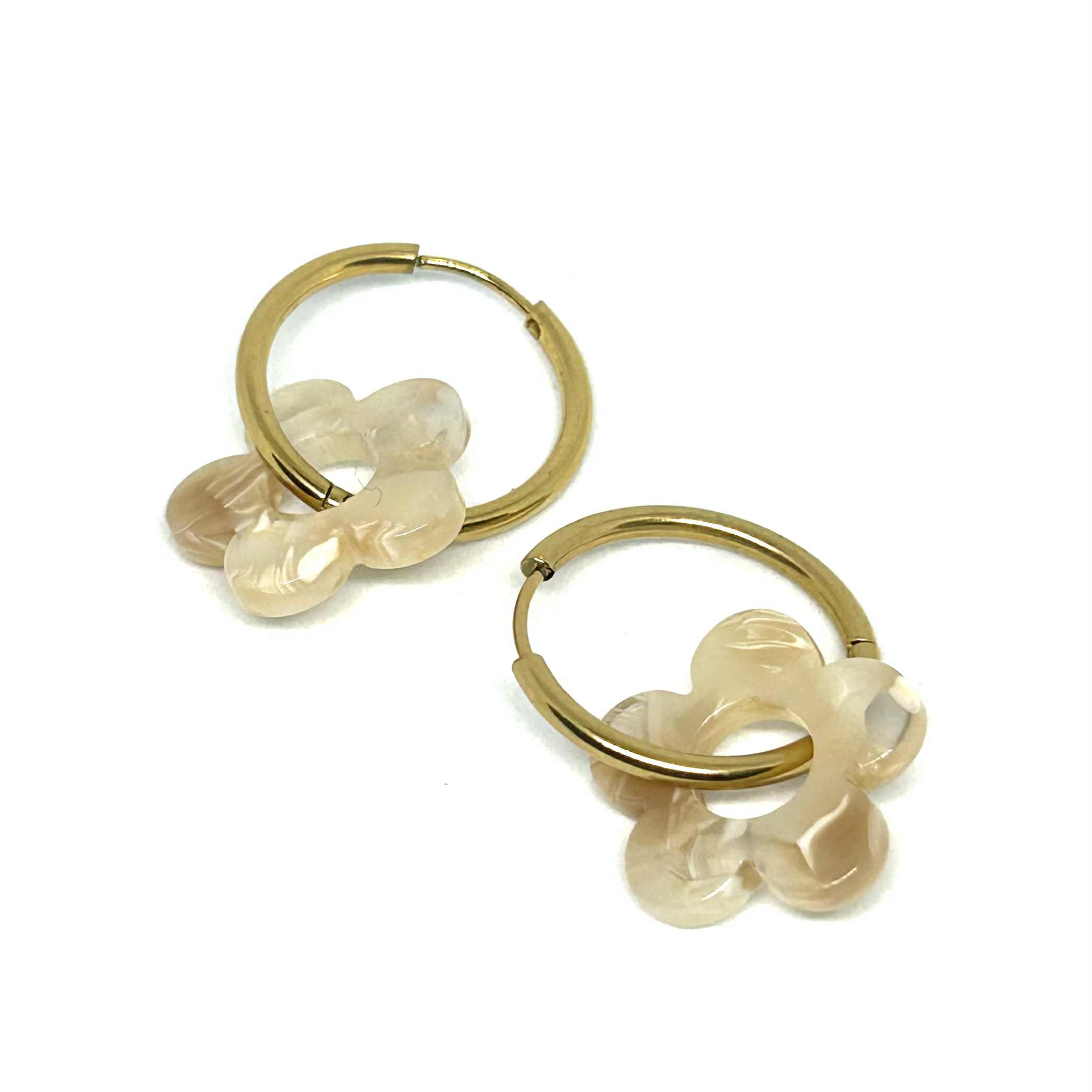 Boucles d’oreilles créoles Flower Blanc iridescent (4)