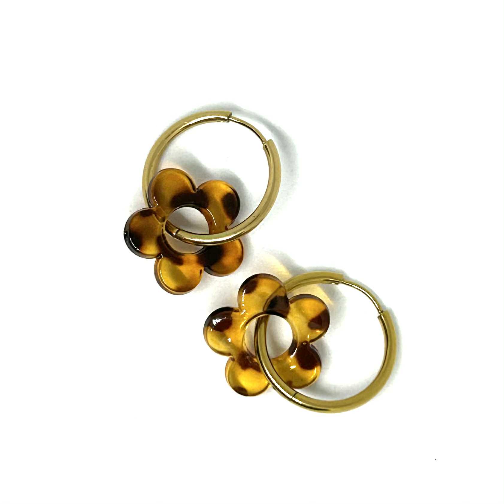 Boucles d’oreilles : Breloque fleur motif léopard.