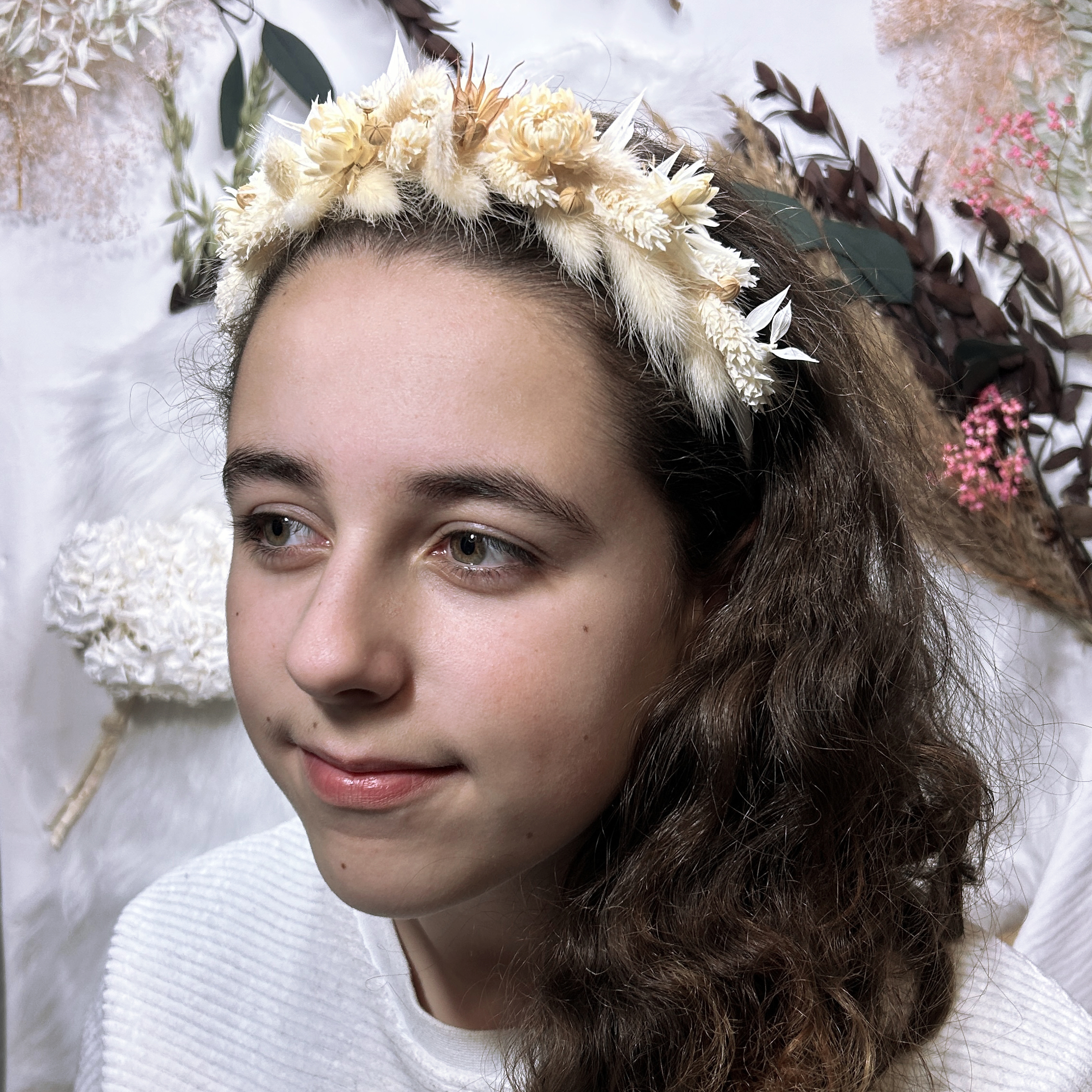 Joli Serre tête en fleurs séchées, avec végétal naturel et fleurs séchées et stabilisées (de fabrication française et production personnelle).
